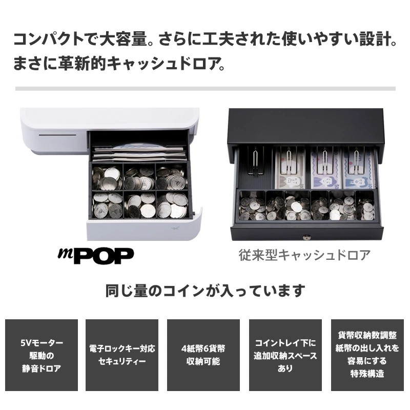 【期間限定特価】レシートプリンター内蔵キャッシュドロア mPOP CBI (Bluetooth/有線接続)